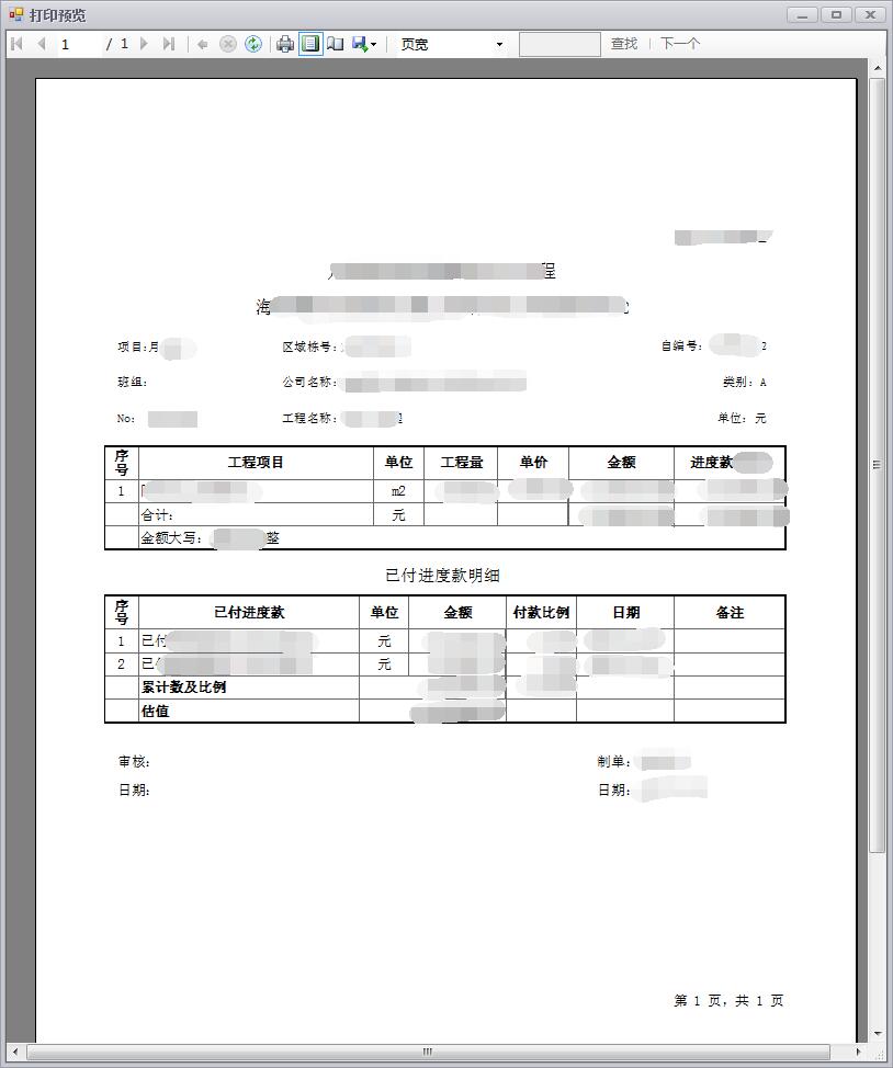 系统直接输出报表、进度单、结算单、支付证明单等,避免人为书写有误,每份单据能够直接生成唯一的二维码标识、直接通过扫描枪实现收单定位跟踪,大大提高工作效率,如下图所示: