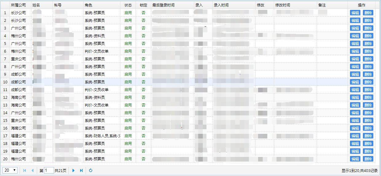 可按角色、用户、账套进行详细的权限设置,如下图所示: